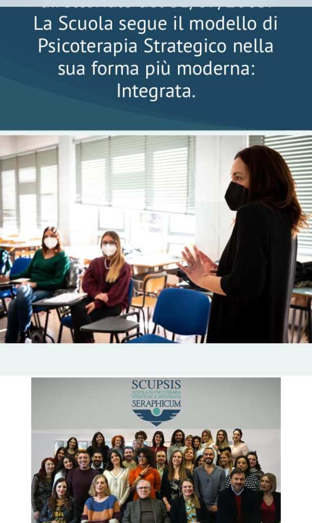 La scuola quadriennale di psicoterapia strategica Integrata (cui si accede SOLO DOPO un percorso di laurea quinquennale e un esame di stato) si basa su “un approccio integrato, un lavoro multidimensionale sulla persona (famiglia e/o gruppo) finalizzato al cambiamento. Oggi, sembra sempre meno utile ed efficace un intervento attraverso una prospettiva teorico-metodologica unica, sia essa cognitivista, sistemica o psicodinamica. Viceversa, utilizzare nel proprio lavoro terapeutico con il cliente più strumenti di diversi approcci e quindi servirsi della tradizione teorica di più modelli, come quello costruzionista, sistemico, cognitivista, offre allo psicoterapeuta strategico più opportunità interpretative nonché di intervento” [scupsis.it]
